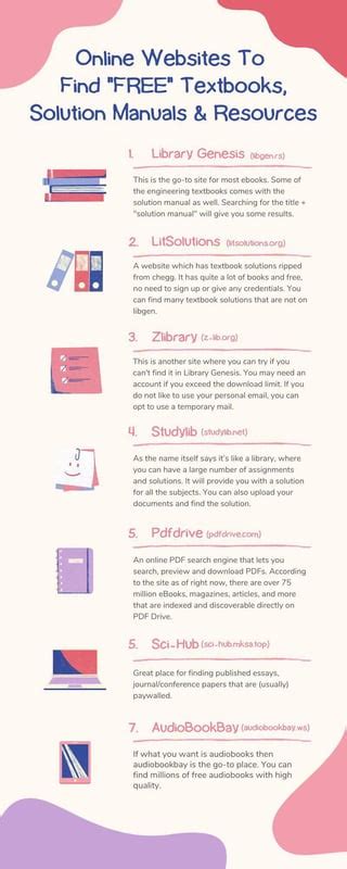 Download solution manuals to textbooks for free Epub online is a convenient and frugal way to read solution manuals to textbooks for free you love right from the comfort of your own home. Yes, there sites where you can get Epub "for free" but the ones listed below are clean from viruses and completely legal to use.