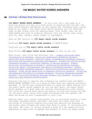 Read Online 100 magic water words answer key Epub online is a convenient and frugal way to read 100 magic water words answer key you love right from the comfort of your own home. Yes, there sites where you can get Epub "for free" but the ones listed below are clean from viruses and completely legal to use.