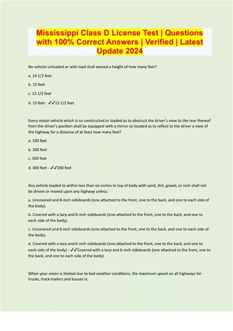 Read Online Mississippi Class D License Test Answers Doc